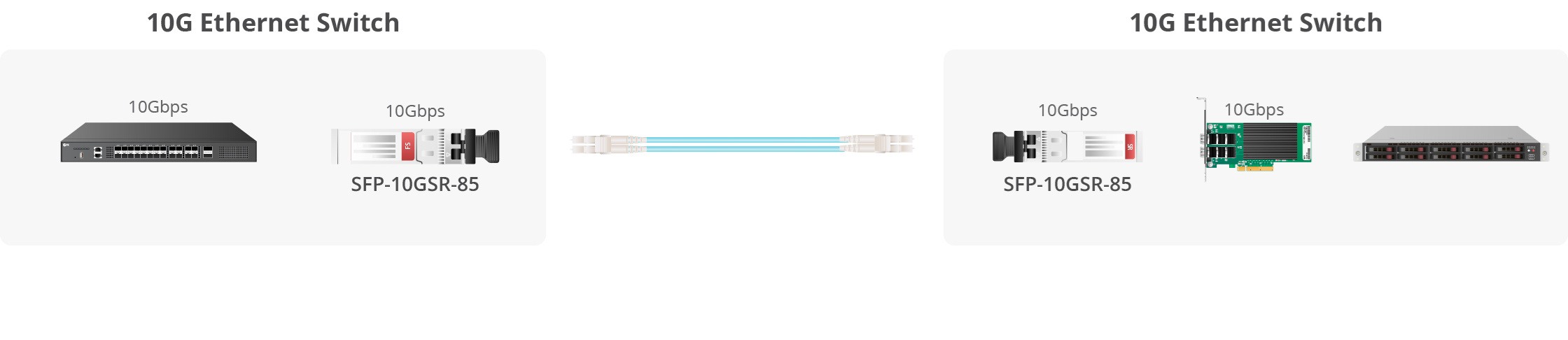 • 850nm VCSEL laser and PIN photodiode, Up to 300m for OM3-MMF transmission
